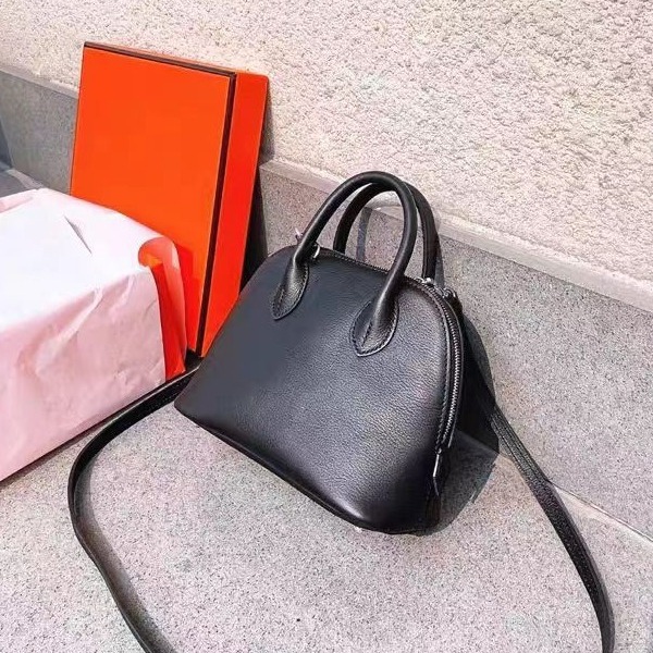 半手缝全皮贝壳包女mini保龄球包真皮钢五金女包手拎单肩斜挎包潮