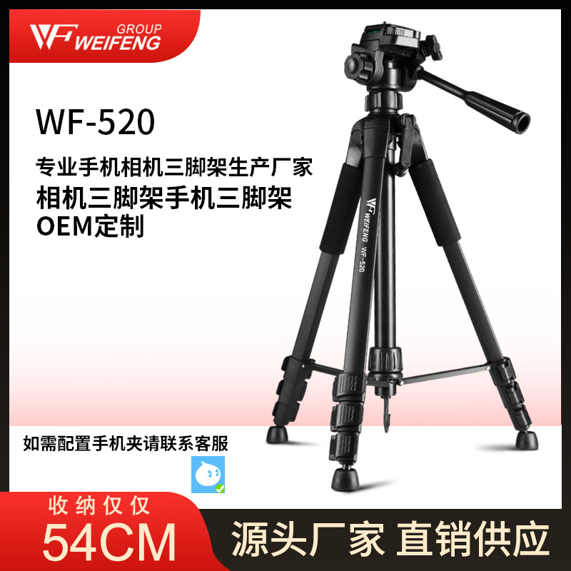 伟峰520三脚架单反微单相机摄影架便携三角架手机直播支架