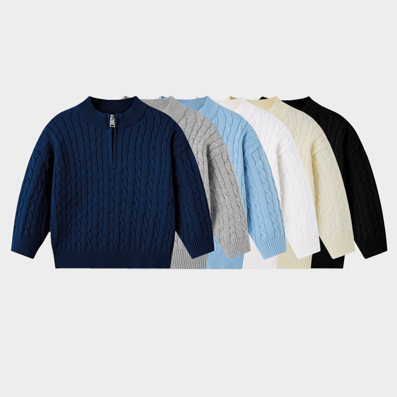 2025新款秋冬儿童拉链毛衣男女童纯棉麻花半高领针织衫保暖打底衫