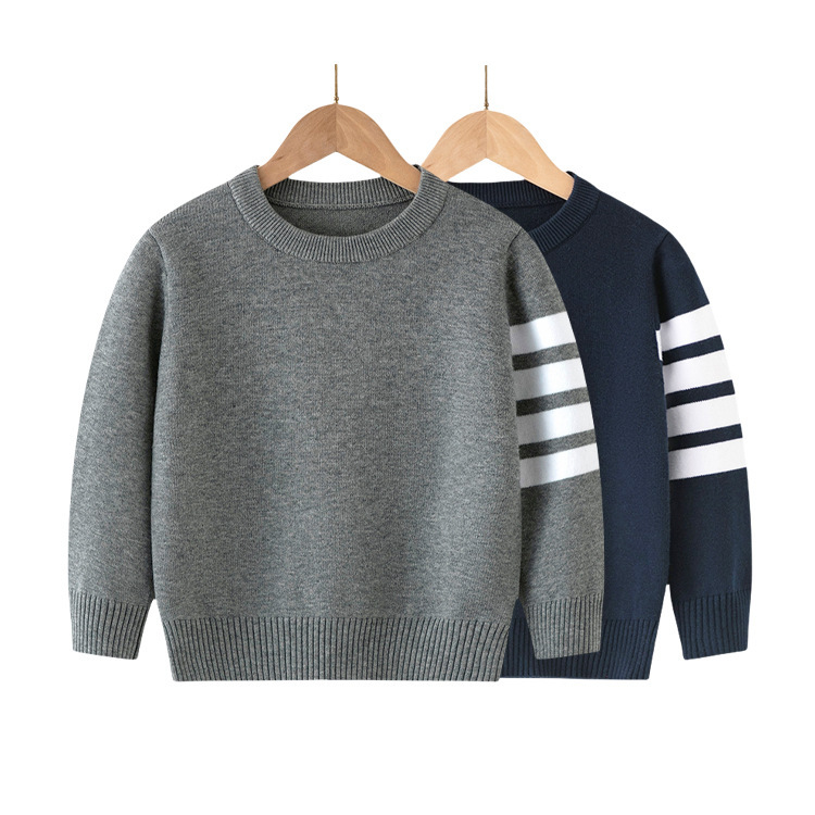 厂家直销春秋款儿童棉线毛衣男女中大童英伦学院风圆领套头针织衫