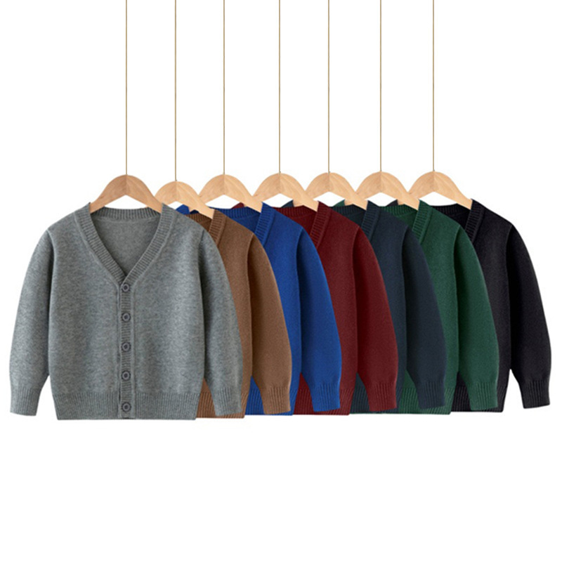厂家直销英伦学院风儿童毛衣外套男女童春秋薄款纯棉线针织开衫