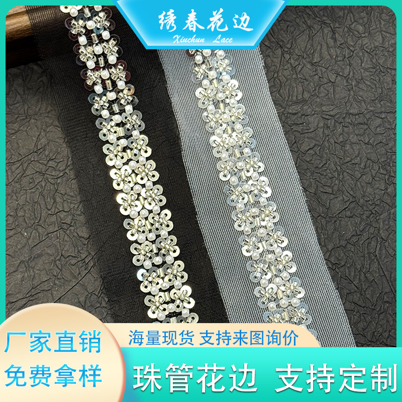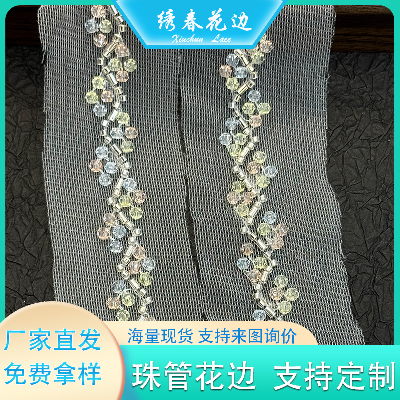 网纱珠管刺绣花边 服装辅料DIY手工糖果色水晶珠绣条码 礼服配饰