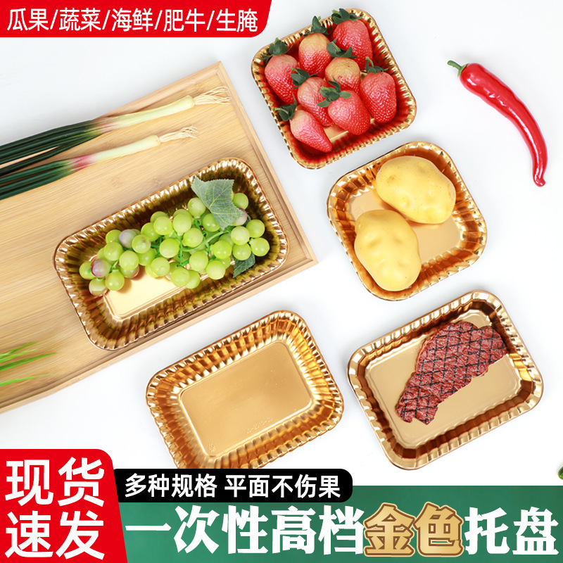 批发一次性金色托盘三文鱼水果包装盒PET无盖塑料牛排生鲜托盘