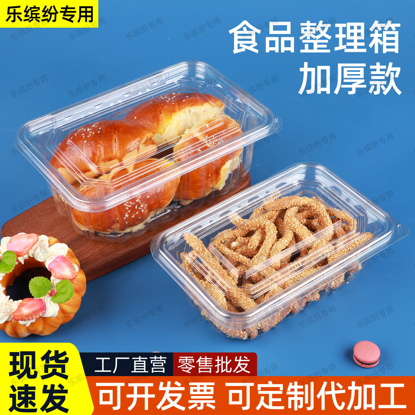 食品整理箱饼干寿司面包包装盒PET打包盒干果蛋卷密封塑料收纳箱