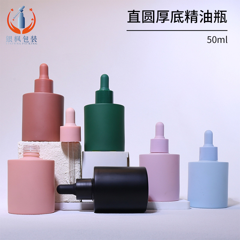 50ml直圆厚底精油瓶平肩磨砂玻璃分装瓶胶头滴管精华液小样精油瓶