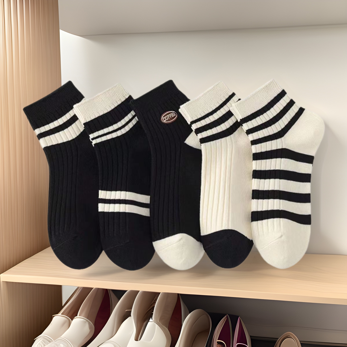 【5双装】成人袜子春夏男女士潮袜全透气纯色大学生中筒涤棉船袜