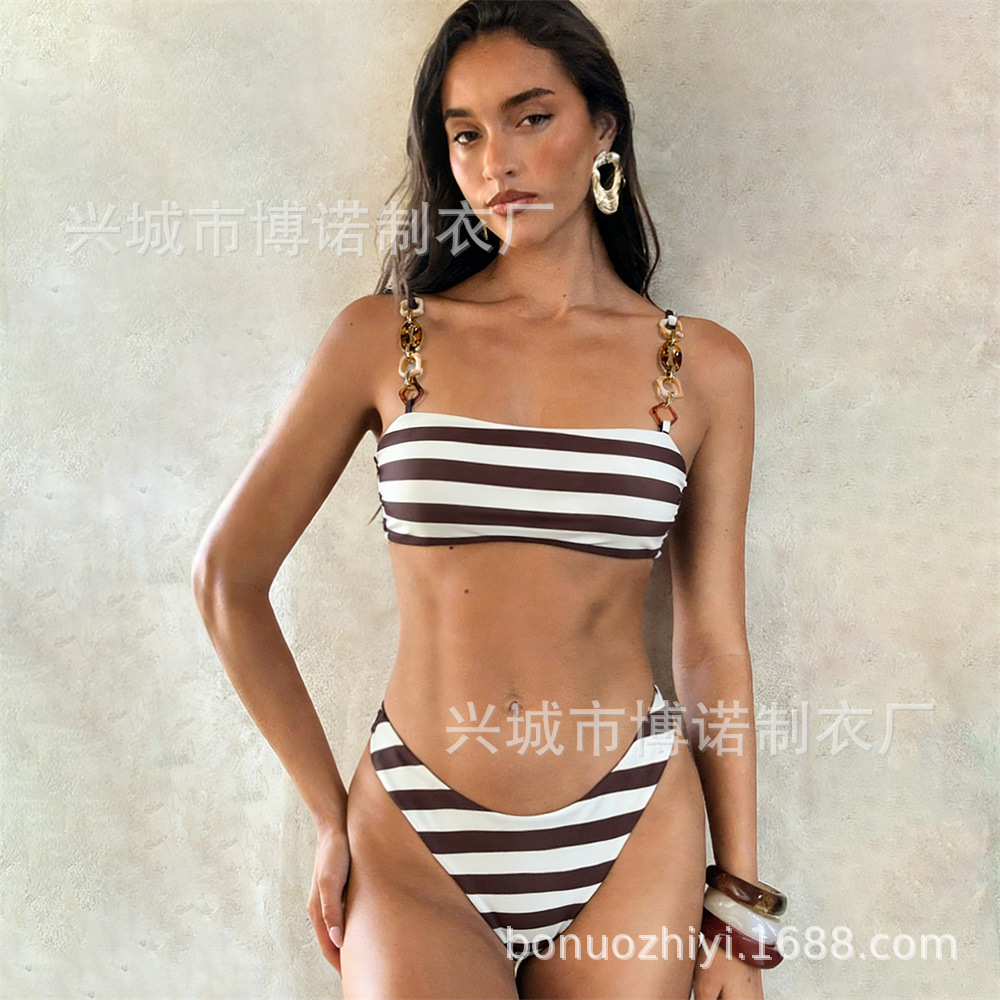 2026新款性感条纹肩带时尚泳衣欧美温泉Bikini分体比基尼泳装现货