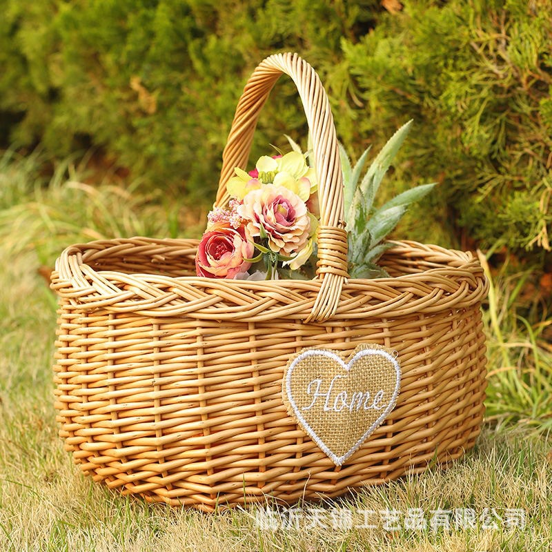 柳编手提收纳篮编织收纳筐藤编购物篮户外野餐篮竹编采摘篮水果篮