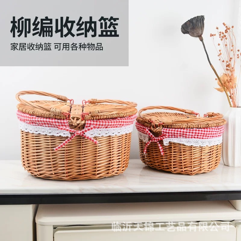柳编藤编收纳筐草编野餐篮户外带盖手提篮礼品篮零食水果篮鸡蛋篮