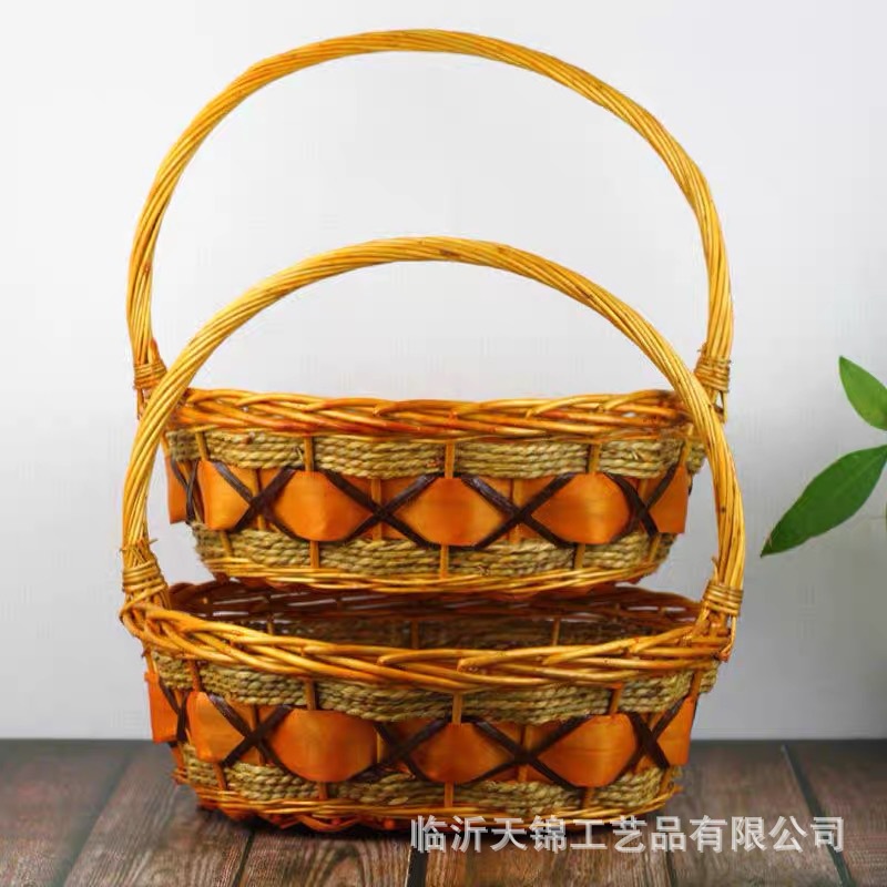 厂家直销柳编水果篮 手工藤编草编手提篮购物篮 创意礼品包装花篮