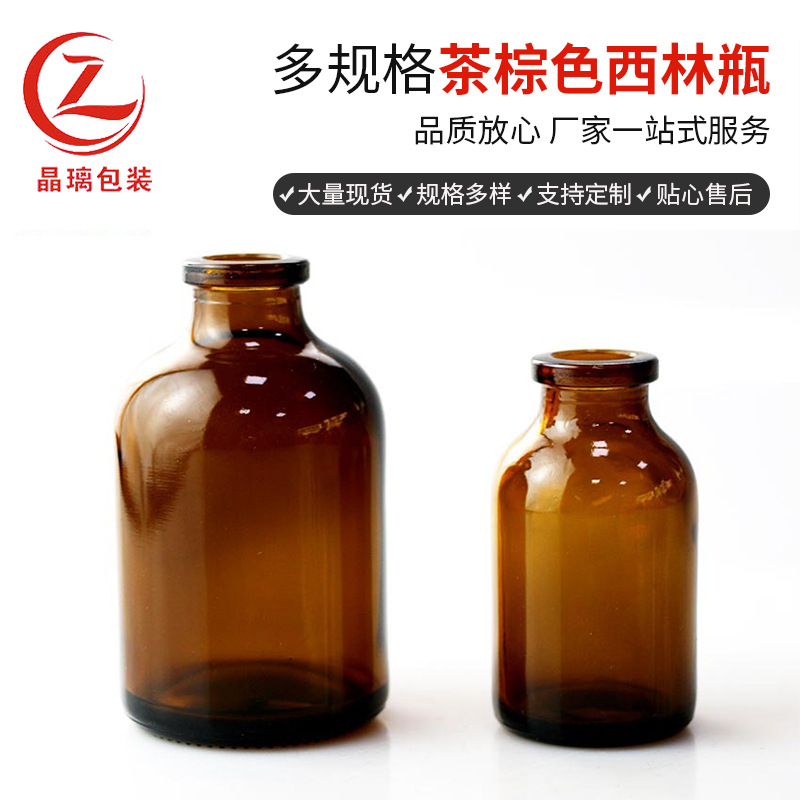 现货批发茶棕色西林瓶20-100ml冻干粉玻璃瓶玻尿酸精华医美瓶安瓶