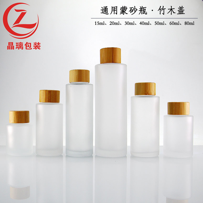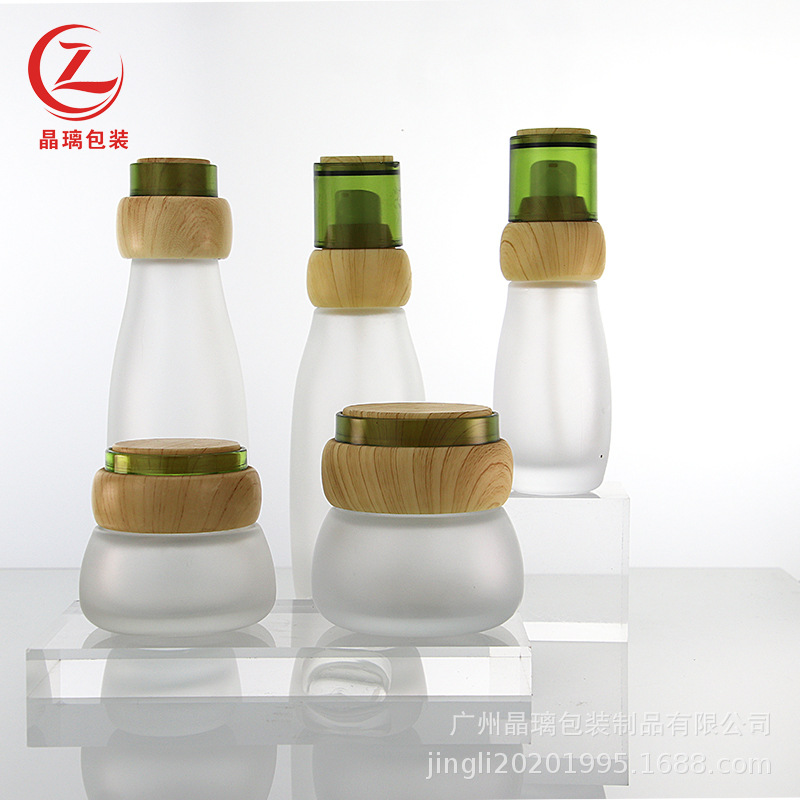 晶璃厂家磨砂玻璃套装瓶40-120ml竹木纹套装瓶30-50g眼药霜玻璃瓶