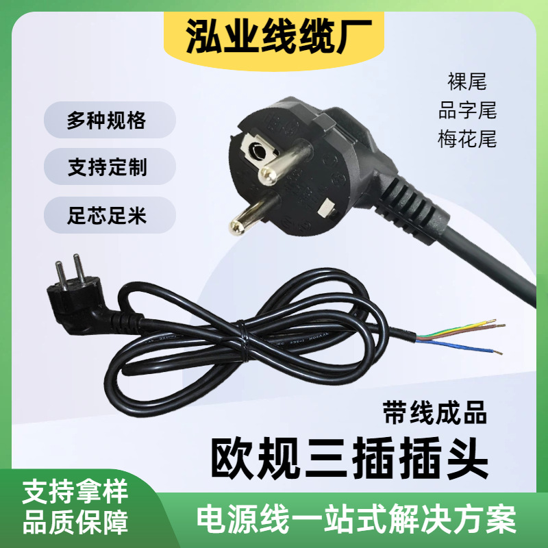 欧规三插电源线品字尾梅花尾插头线纯铜芯欧式电源连接线厂家直供