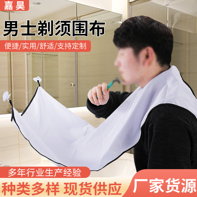 跨境涤塔夫吸盘剃须围布理发店清洁胡须围兜男士烫染造型成人