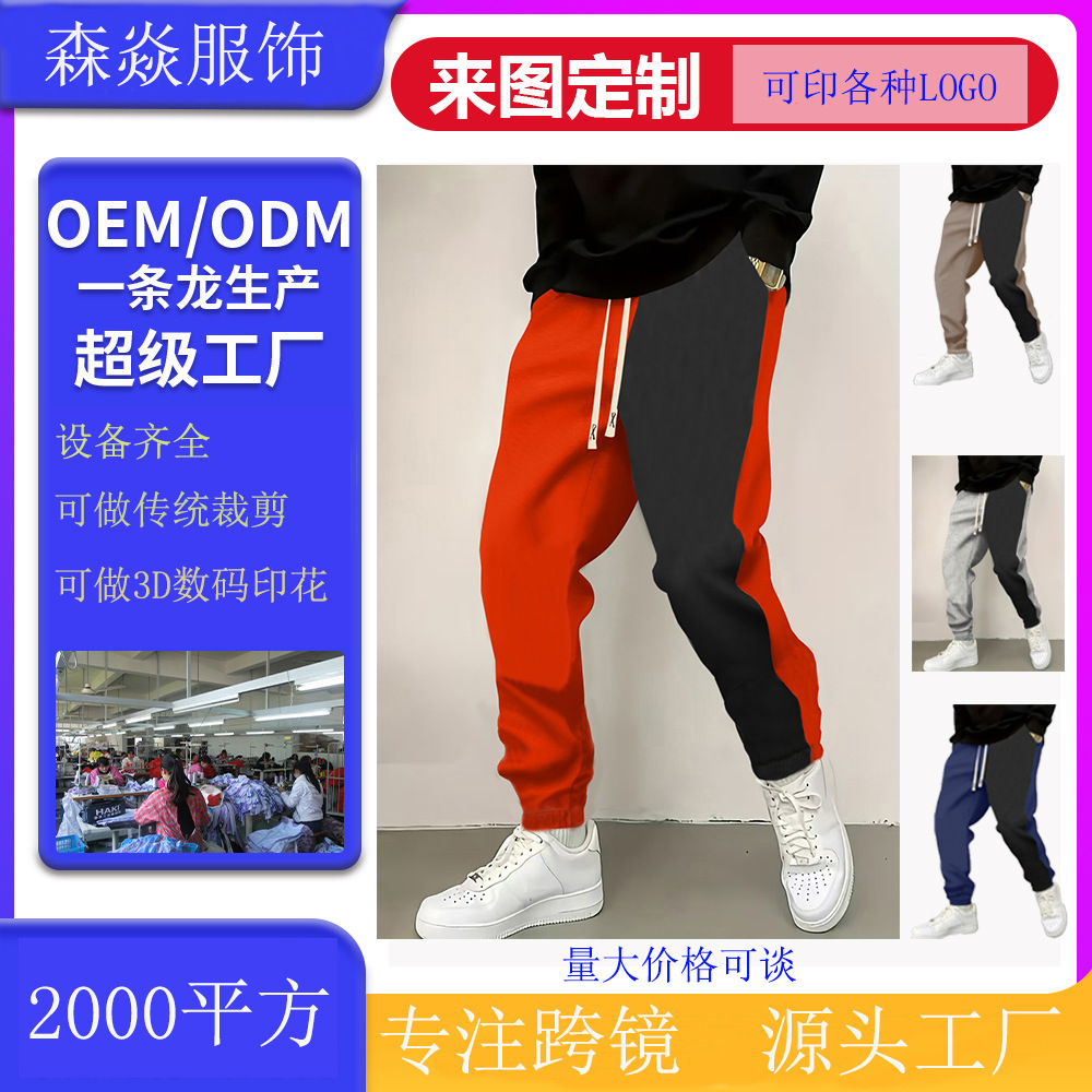 新款拼色抓绒保暖长裤直供欧美跨境独立站厂直销纯色来图可印LOGO