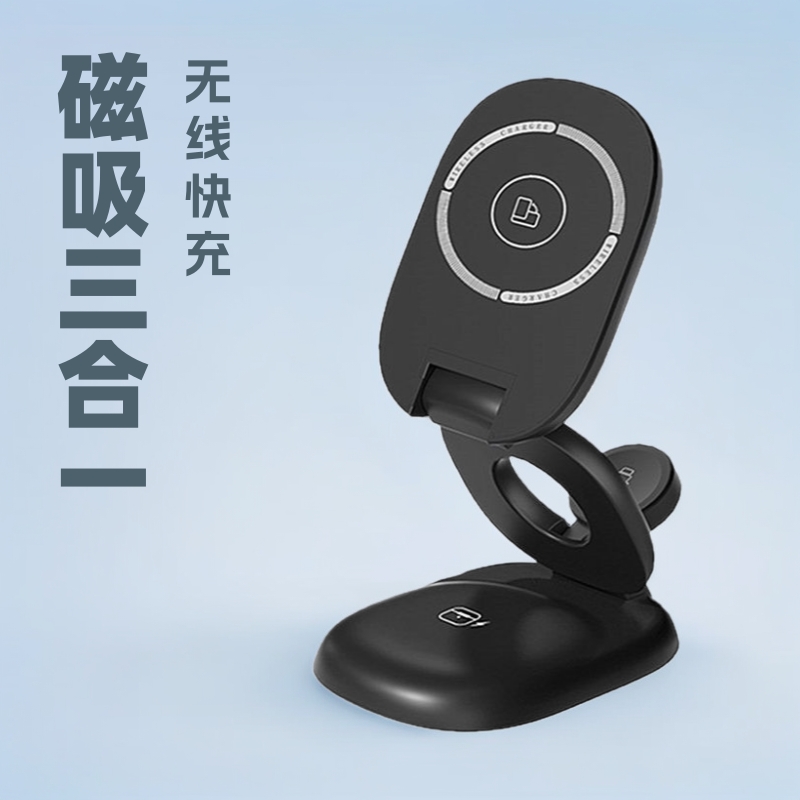 手机无线磁吸充折叠支架适用于苹果14手表耳机充电厂家批发可折叠