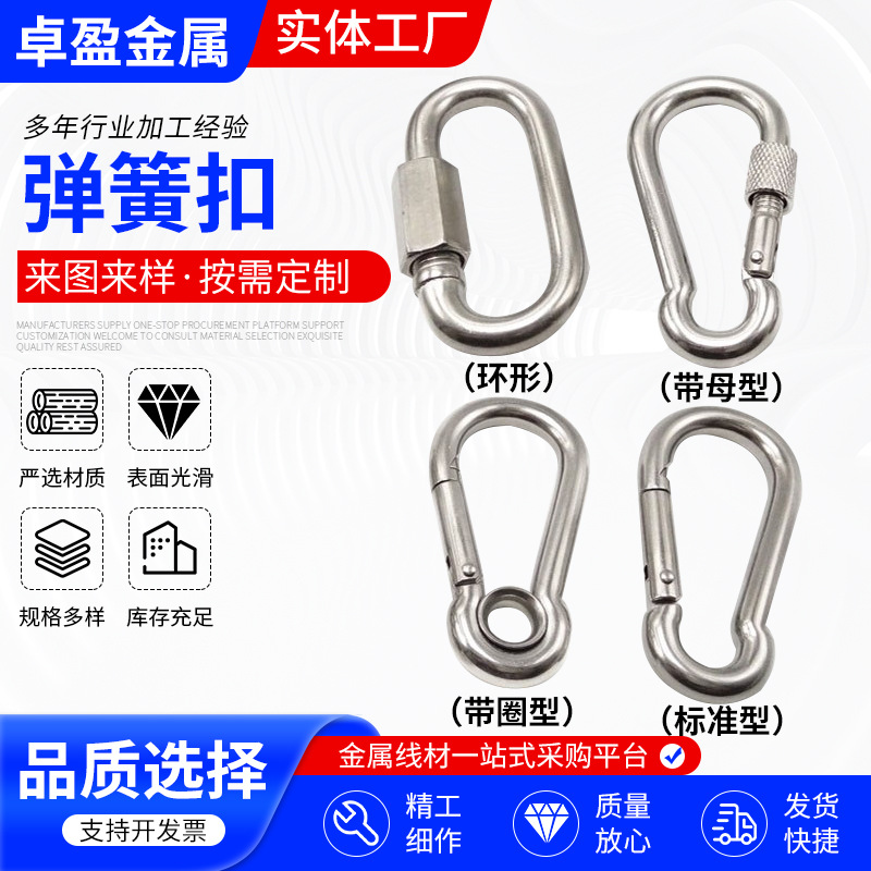 304不锈钢弹簧扣带母绳扣带圈型葫芦扣环形登山扣钩索具链条扣环