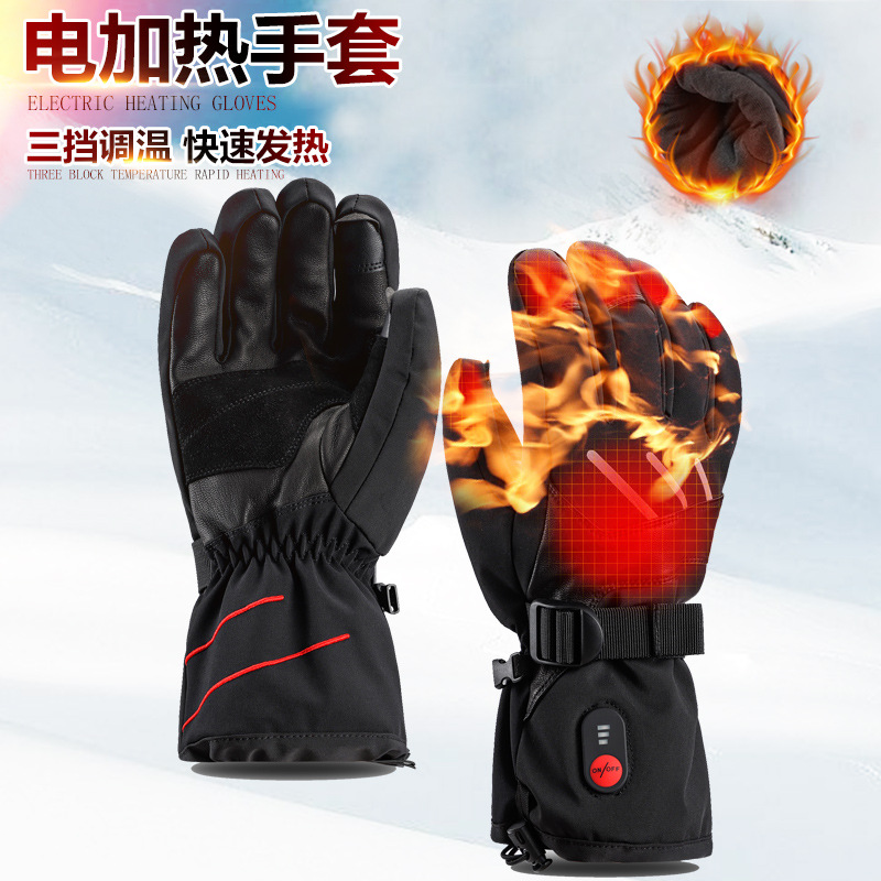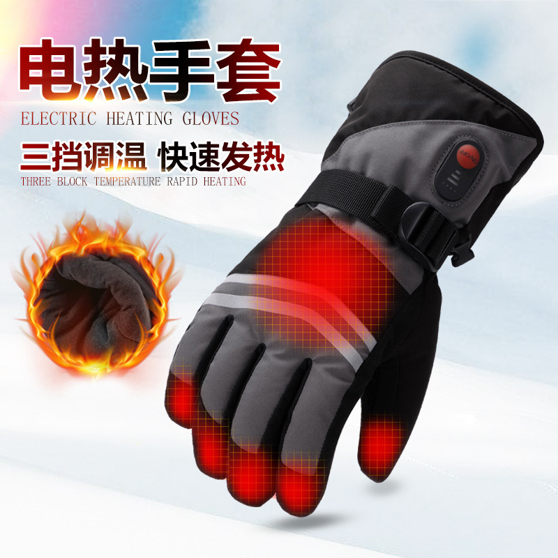 户外运动智能发热手套冬季防寒保暖加热手套调温滑雪手套跨境专供