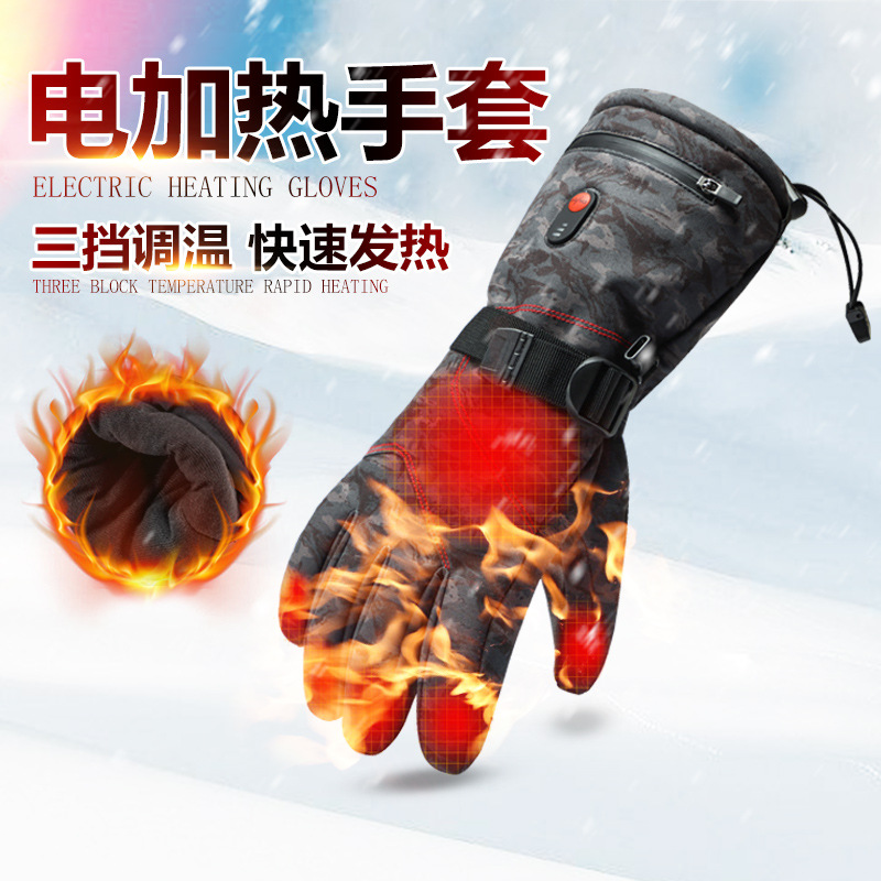 电加热滑雪户外骑行手套USB冬季运动保暖手套男女款防寒发热手套