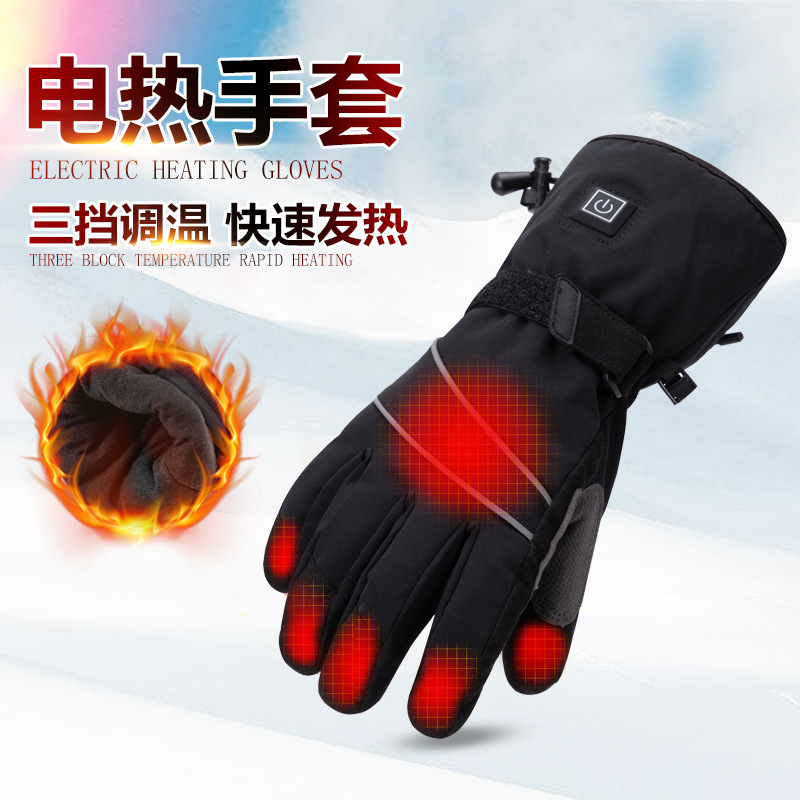 冬季发热手套滑雪户外骑行电热手套五指可触屏保暖防寒冷加热手套
