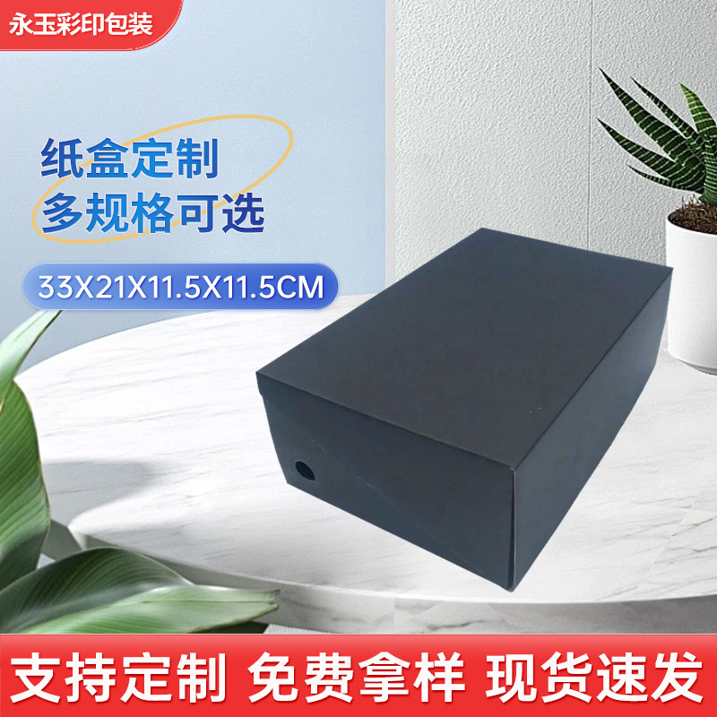 晋江厂家供应黑色高盖覆亚膜鞋盒折叠纸盒加厚加固鞋子收纳包装盒