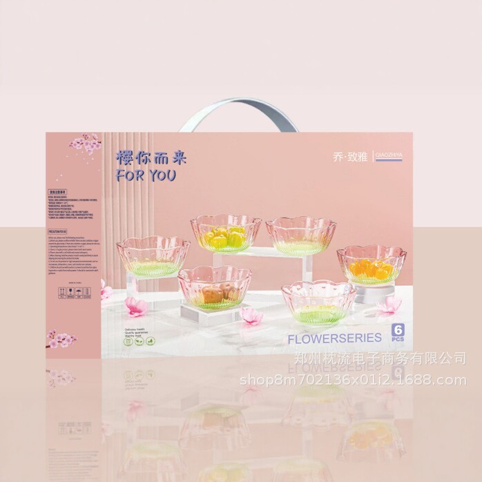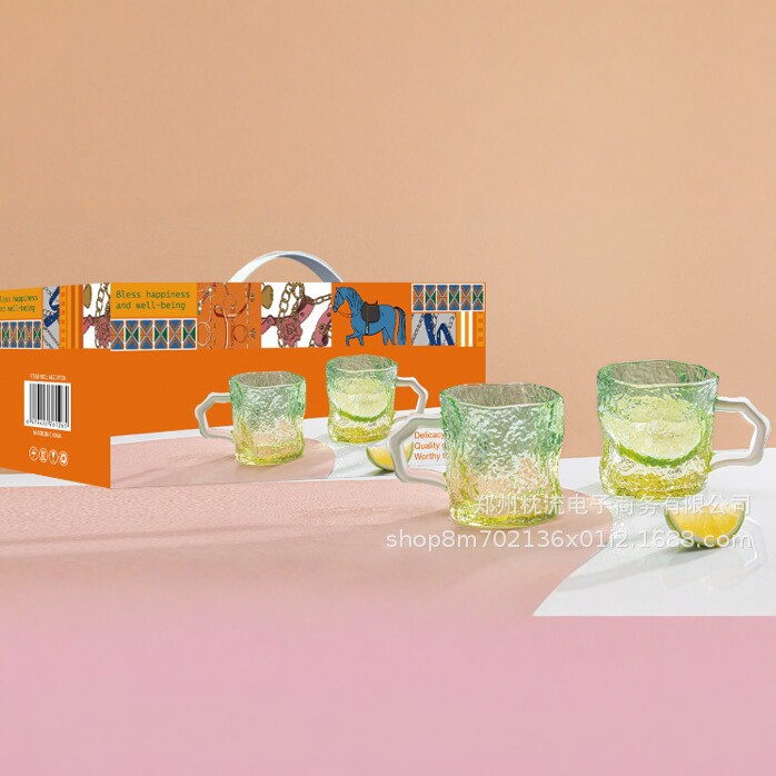初樱系列炫彩玻璃杯六件套家用耐热水杯礼盒装创意送礼杯