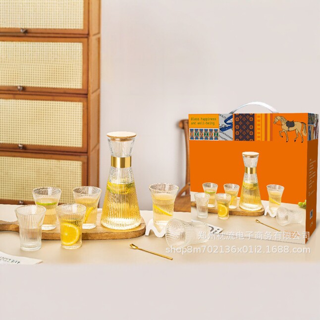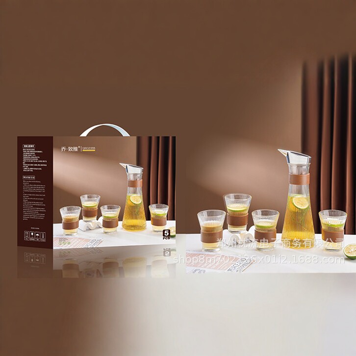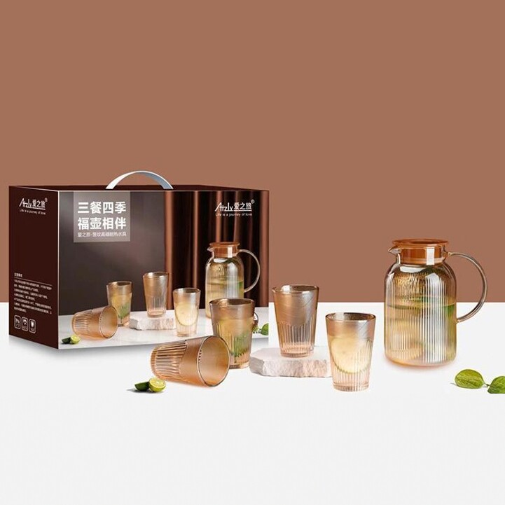 爱之旅高硼硅玻璃水具套装家用轻奢水壶四杯礼盒装琥珀色耐热
