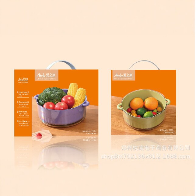 爱之旅多巴胺滤水篮厨房沥水盆水果收纳篮家用洗菜篮彩色套装