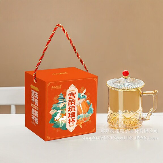 爱之旅一品宫韵琉璃杯AIZLV123随手杯带盖玻璃把杯活动礼品茶杯