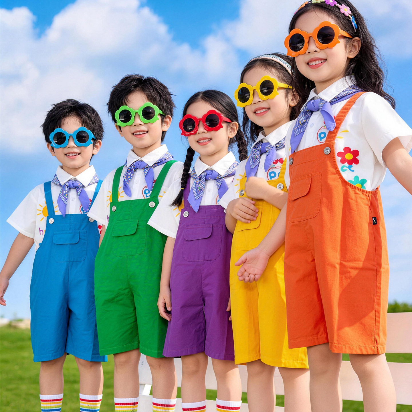 六一儿童表演服幼儿园园服夏季班服背带裤小学生演出服套装糖果色