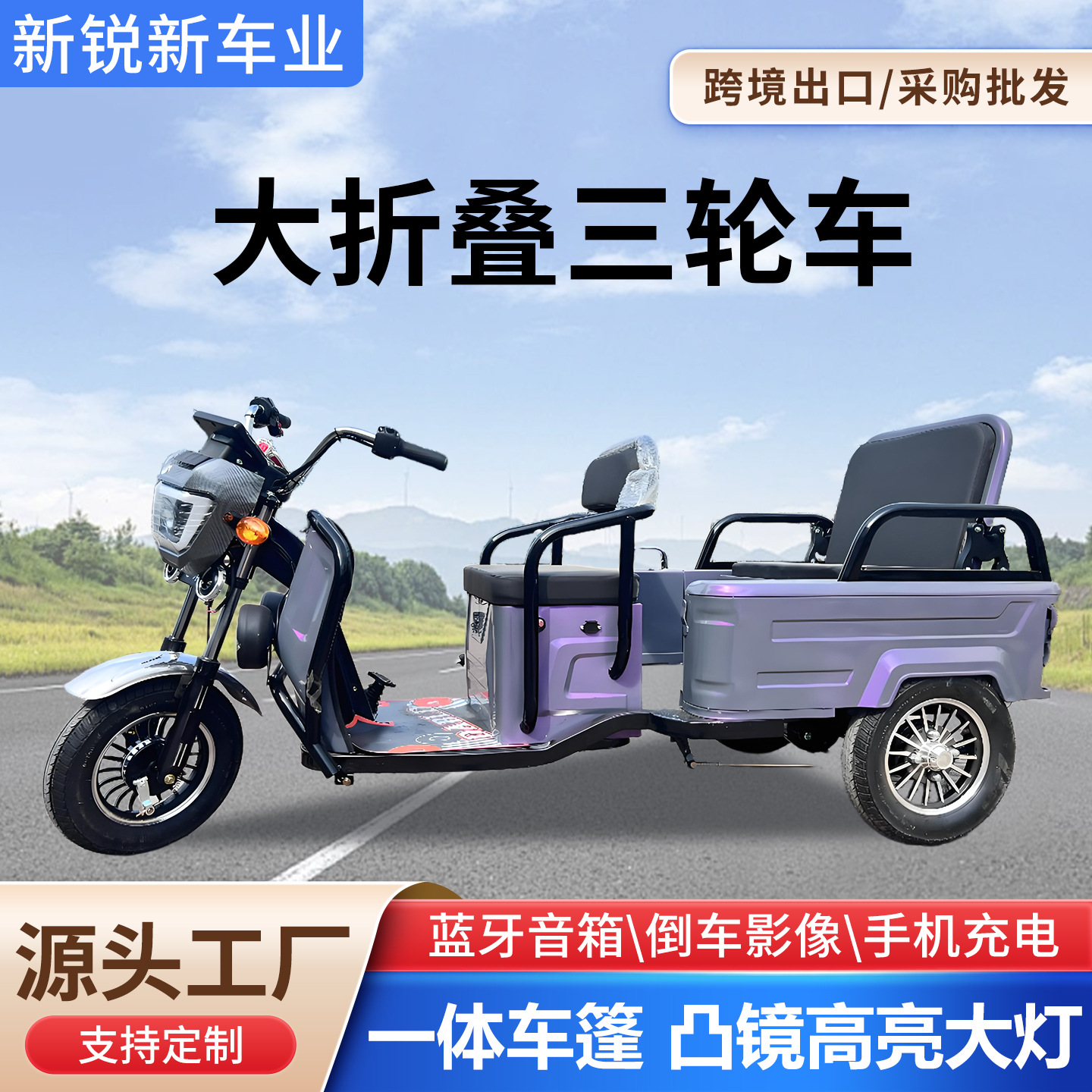 电动三轮车外贸出口家用代步车拉货农用货运车大功率家用三轮车