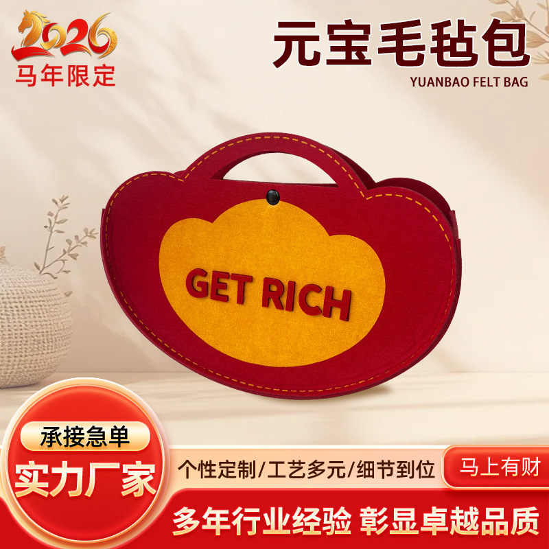 2026新款毛毡包伴手礼年会送客户红色喜庆好运礼品节日高级感礼品