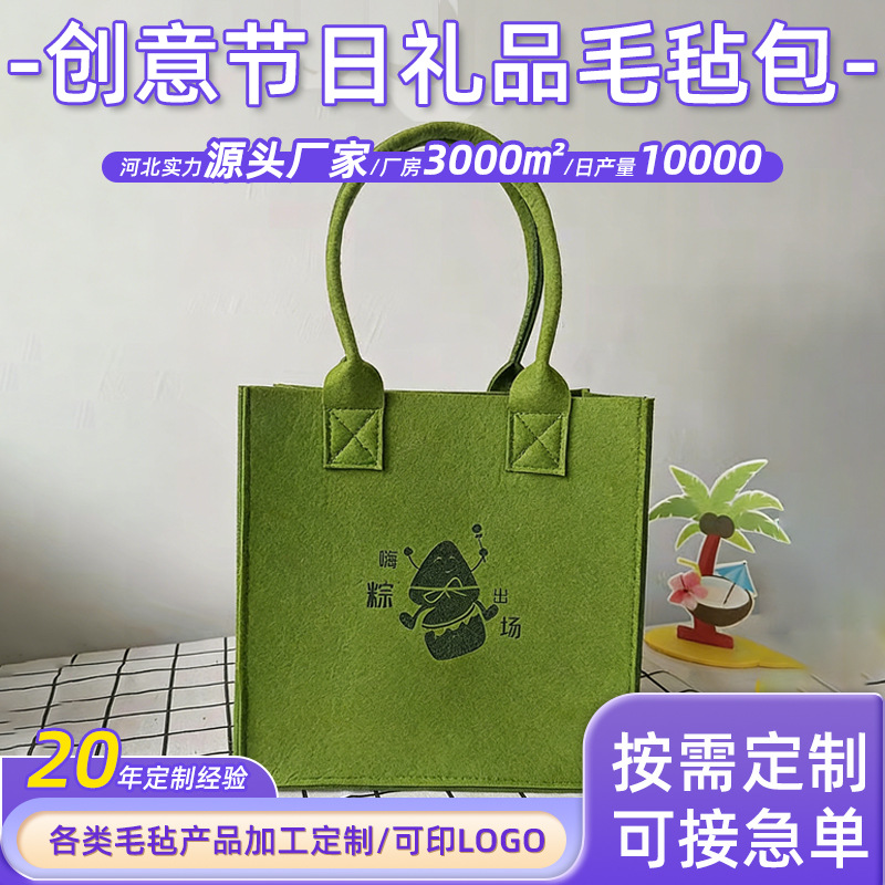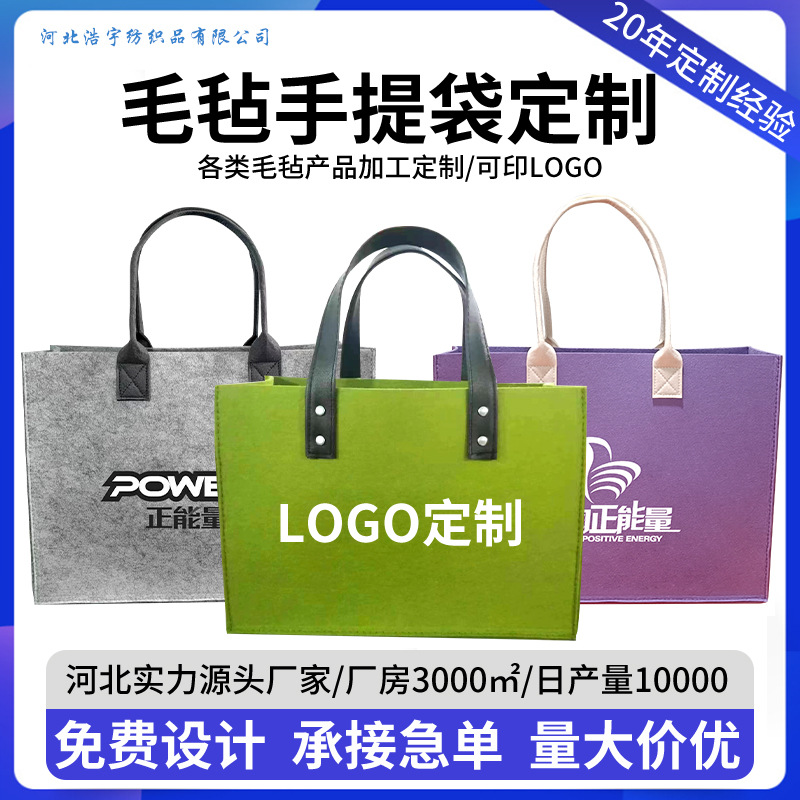 新款毛毡包手提袋可定制logo简约时尚大容量加厚商务广告礼品袋