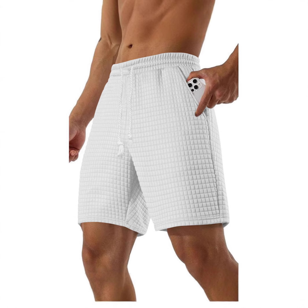 2025跨境亚马逊夏季短裤男五分裤宽松新款纯色小方格运动休闲短裤