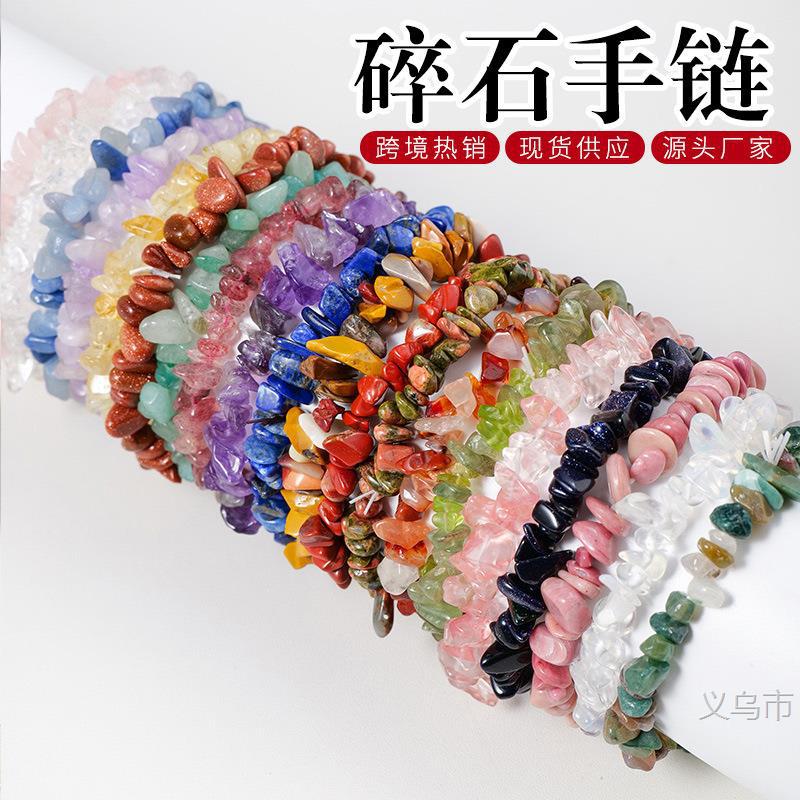 亚马漂亮逊热销水晶碎石手串手镯欧美跨境七彩碎石不规则手链饰品