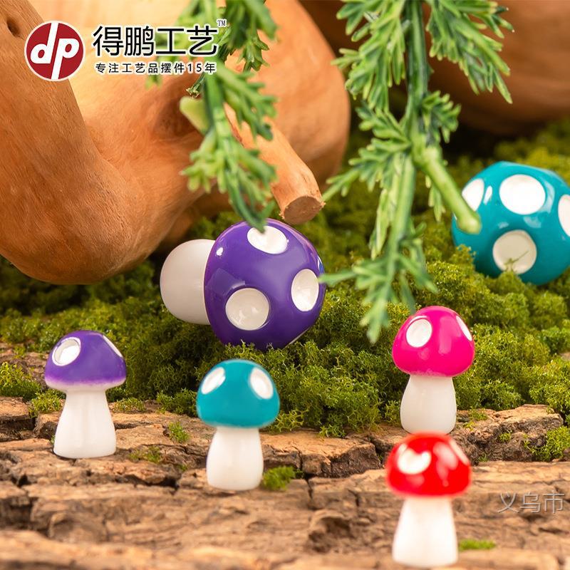 彩色小蘑菇微景观苔藓布景摆件多肉家居饰品树脂工艺品装饰小摆件