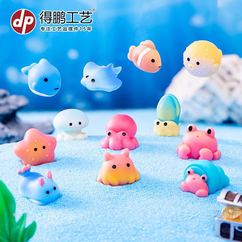微景观海洋小生物海豚章鱼水母螃蟹乌贼海龟鲸鱼水族鱼缸造景摆件