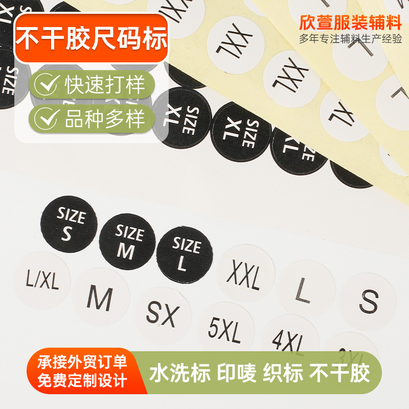 不干胶异型模切尺码标服装鞋帽服饰标签纸胶衣服码数不干胶标签
