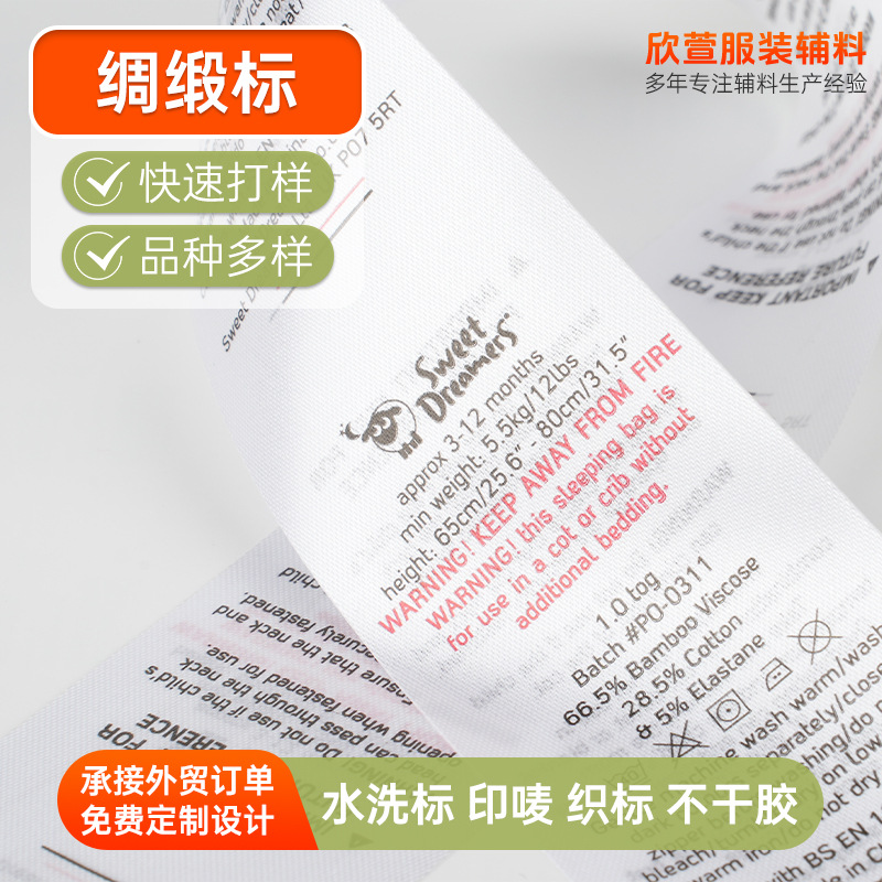 水洗标服装水洗标家纺洗水标儿童水洗唛印唛英文水洗布标LOGO批发