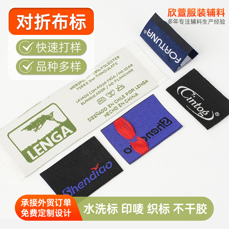 对折布标领标布标对折高密织唛订 做服装标签对折唛商标批发