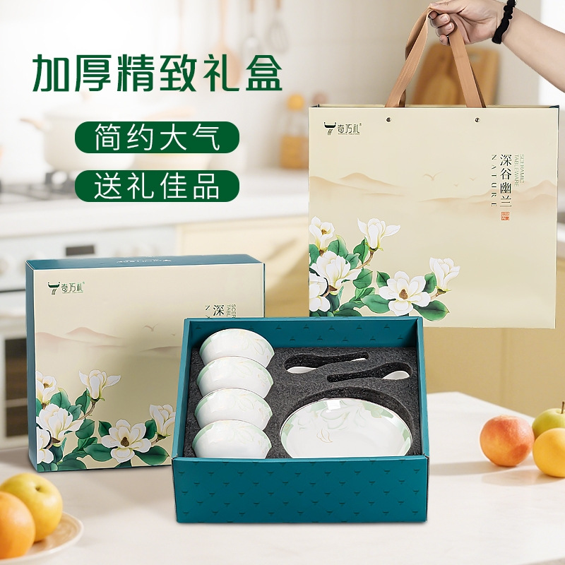 奇巧礼深谷幽兰八件套 创意陶瓷碗勺餐具福利礼品 企业伴手礼