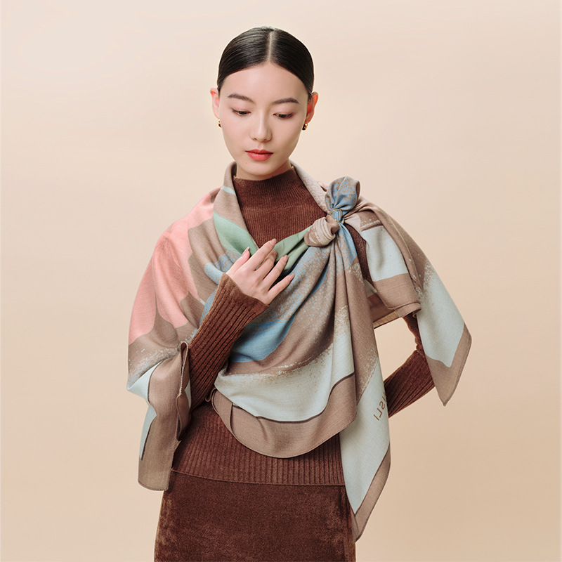 万事利2025门店款秋冬季丝羊毛围巾披肩大方巾空谷香-丝羊毛围巾