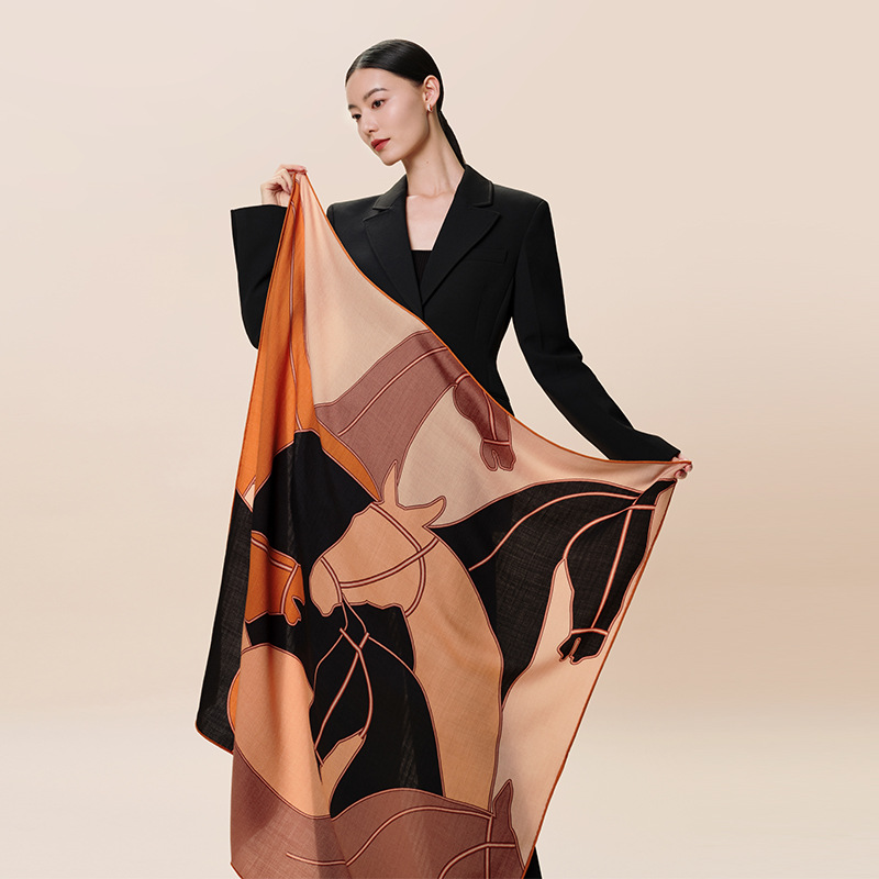 万事利秋冬季披肩围巾成熟优雅带礼盒送礼105骏马呈祥丝羊毛围巾