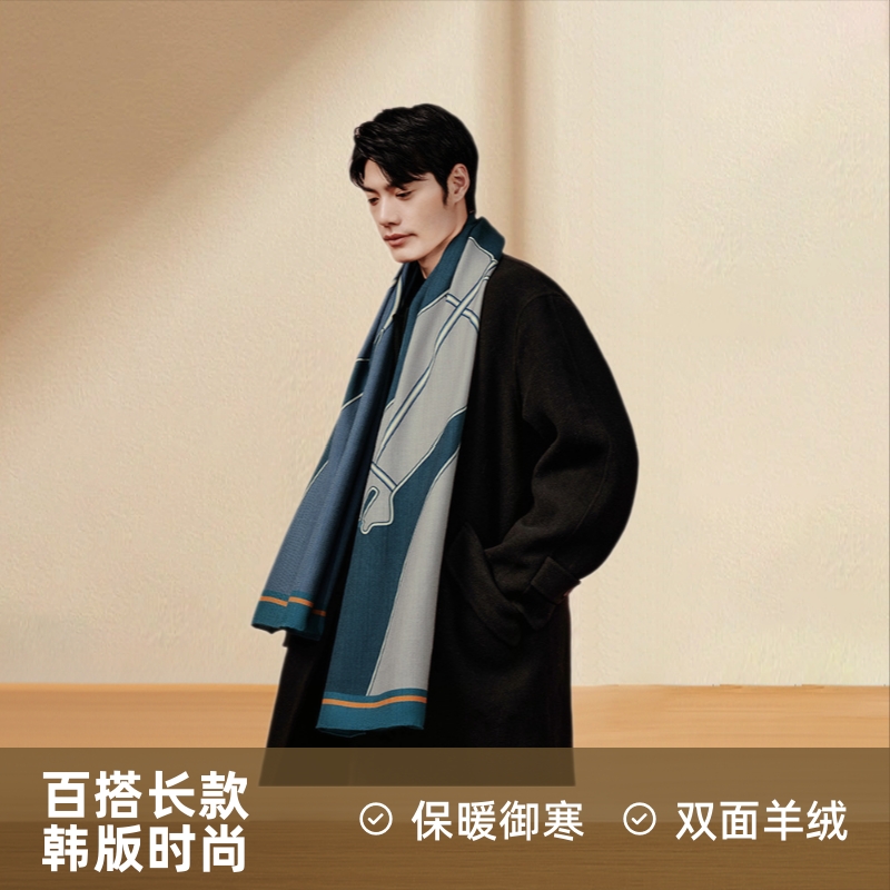 万事利新款条纹围巾秋冬韩版时尚百搭长款保暖双面羊绒骏马呈祥男