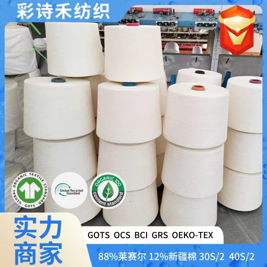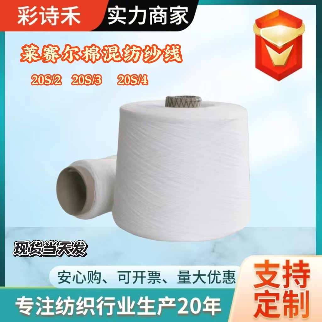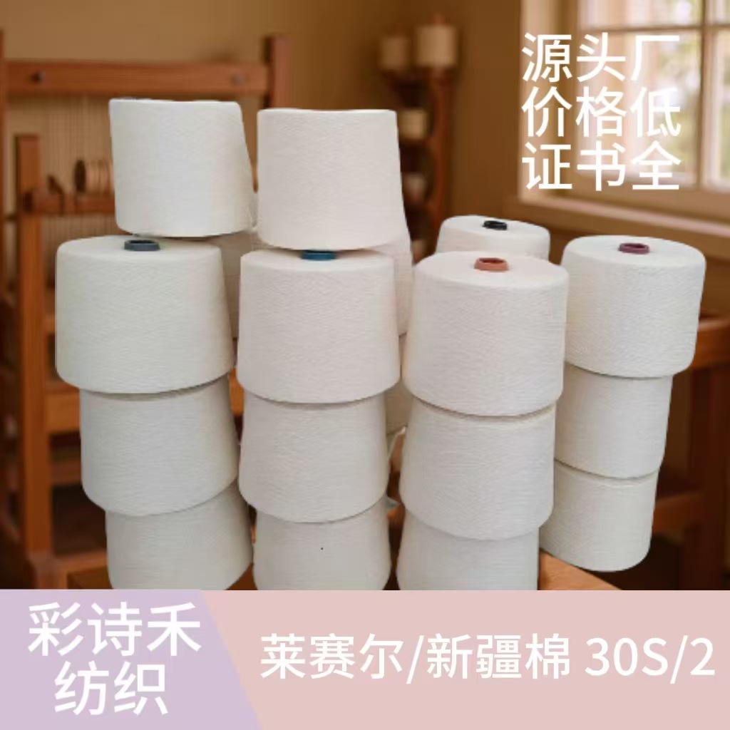莱赛尔棉混纺纱线88莱塞尔/12棉20支2股3股30支2股白色筒形纱精纺