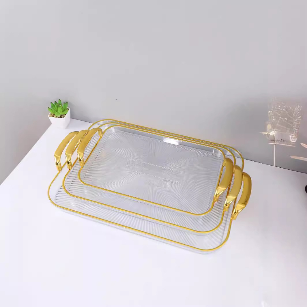 透明咖色镀金直供托盘塑料创意水杯茶盘简约时尚长方形高级感餐厅