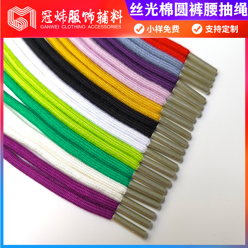 6MM彩色丝光棉编织圆形绳子裤腰头抽拉绳卫衣外套帽带鞋帽绑带绳
