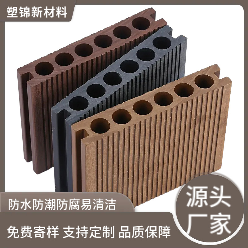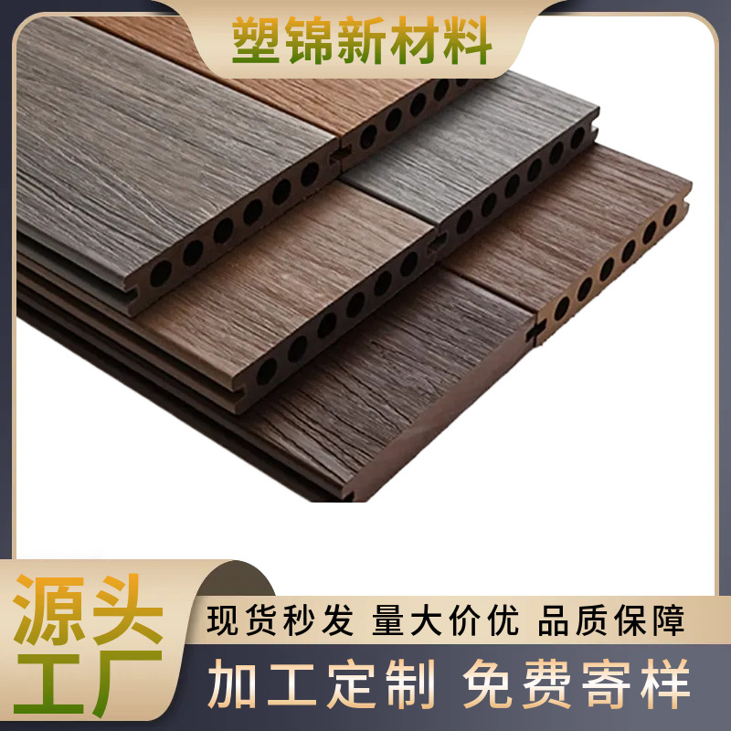 厂家定制二代共挤塑木地板公园庭院阳台地板自铺圆孔塑木地板室外