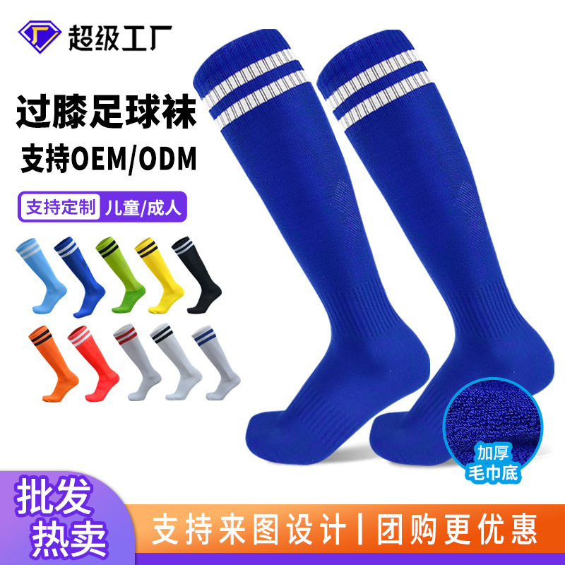 儿童过膝足球袜长筒袜子成人加厚运动青训团购防滑毛巾底训练袜