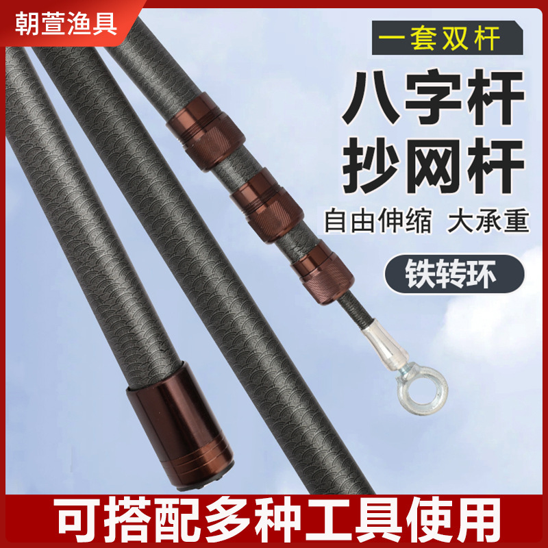 钓鱼绝缘抄网杆捞鱼竿抄鱼网竿双杆伸缩杆抄网捞鱼神器鱼杆硬杆